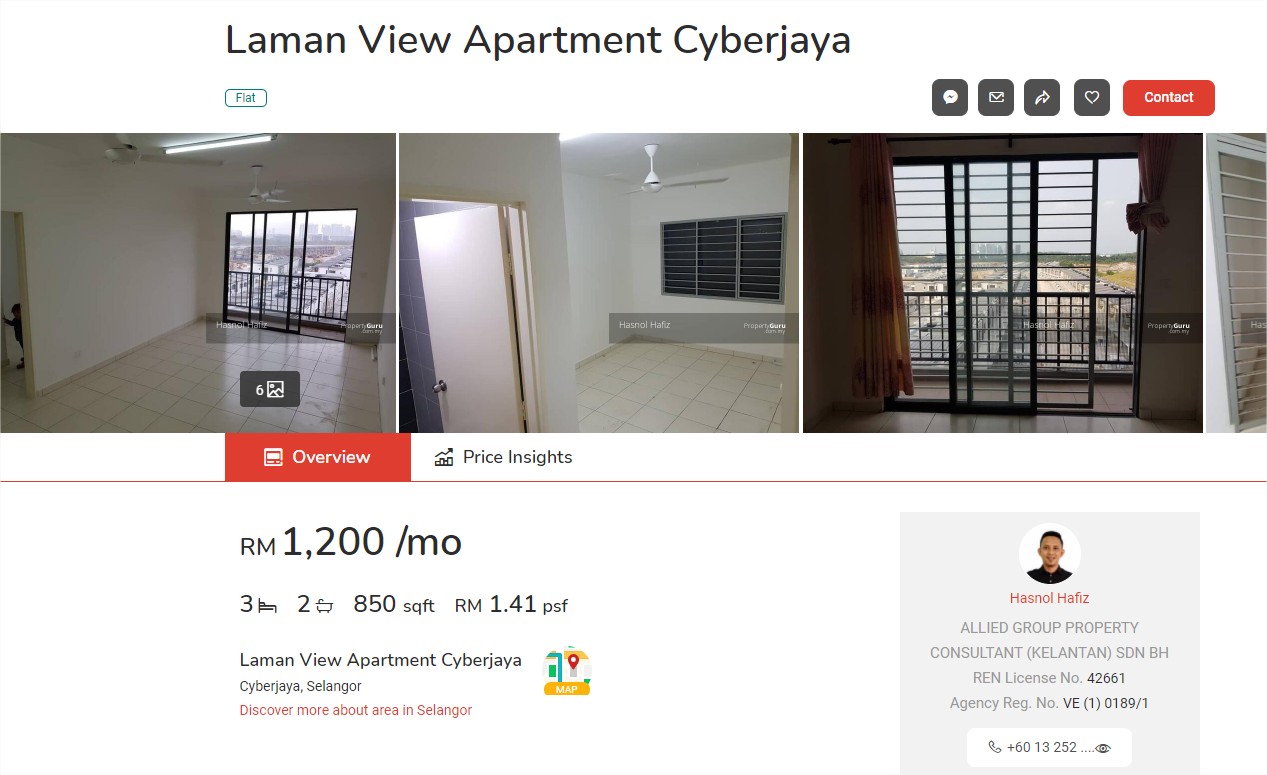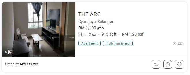 Pour un appartement très simple, sur Cyberjaya, à environ 30 minutes de Kuala Lumpur, 3 chambres, environ 70 m², comptez environ 1200 RM / 240 €.